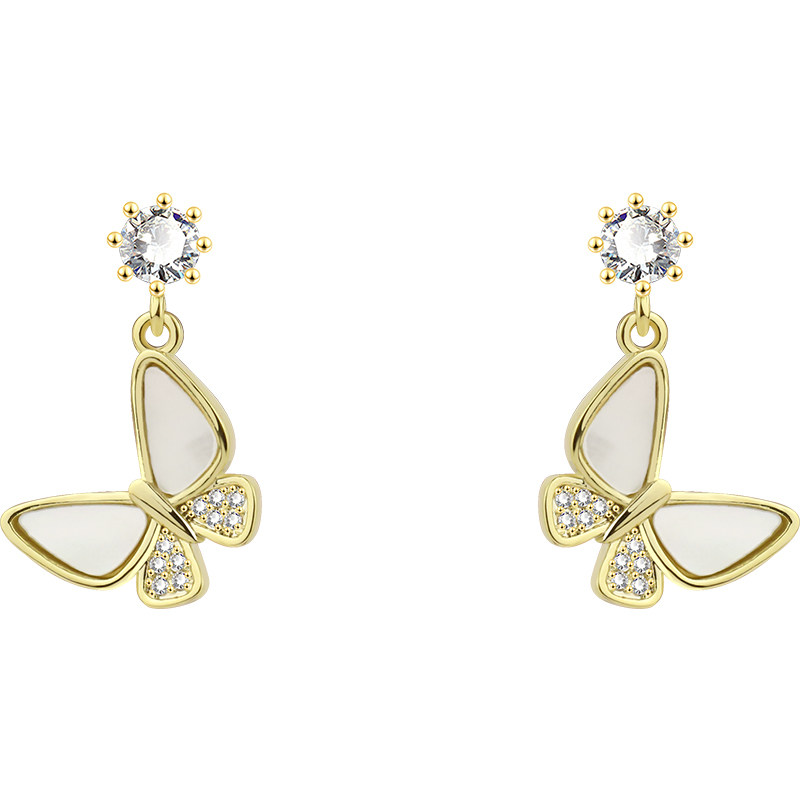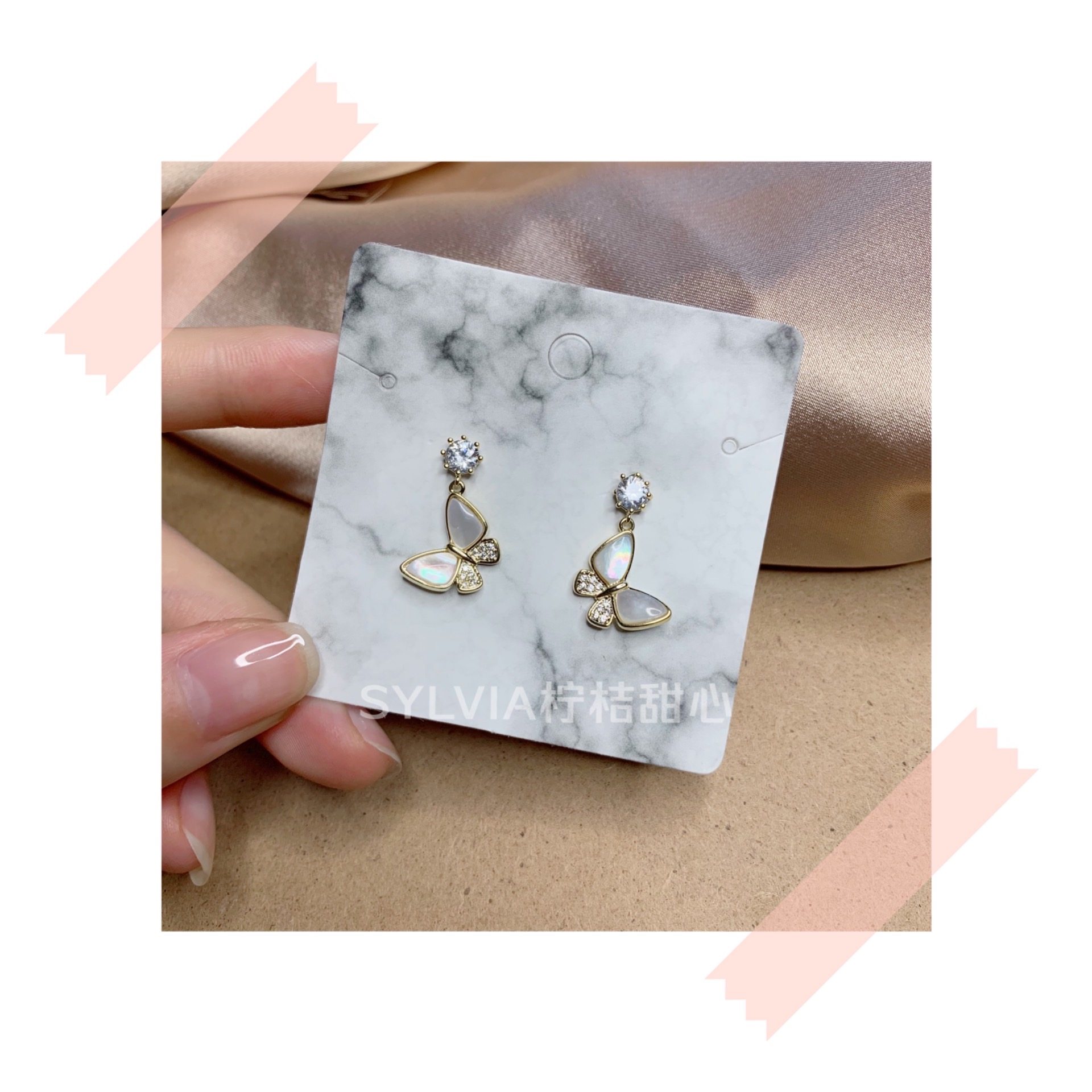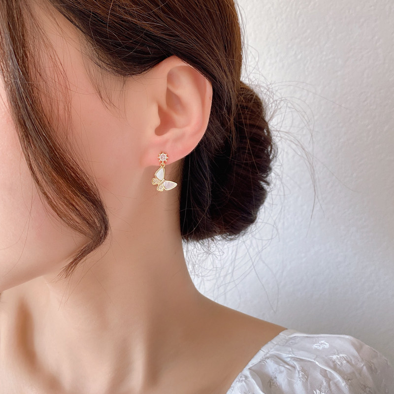 Inlaid diamond white Sichuan fritillary butterfly ear nail zircon earrings Summer superfairy 925 silver needle ear decoration Little frescoed women 2020 new