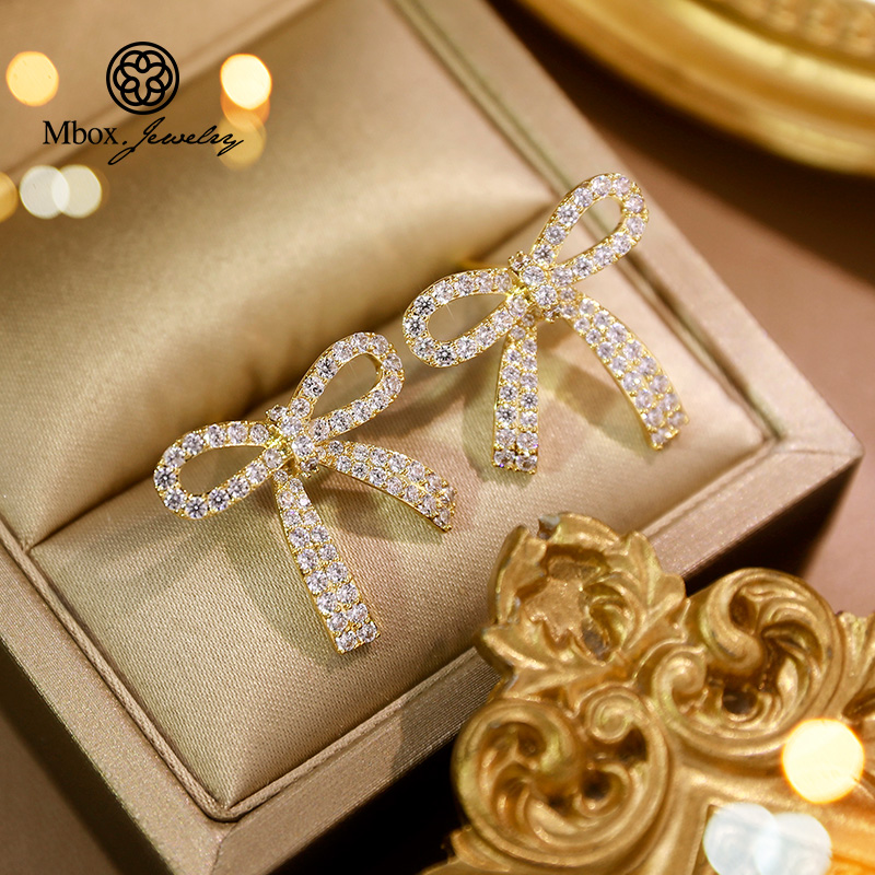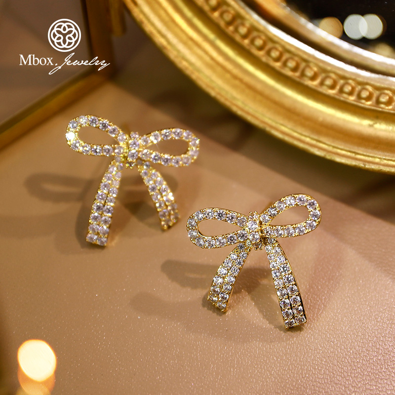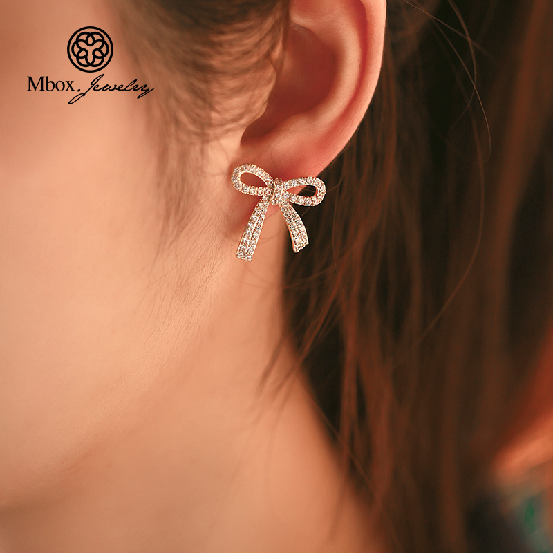 Full of diamond bow earrings women 2021 New Tide advanced sense temperament light luxury rhinestone earrings autumn and winter models