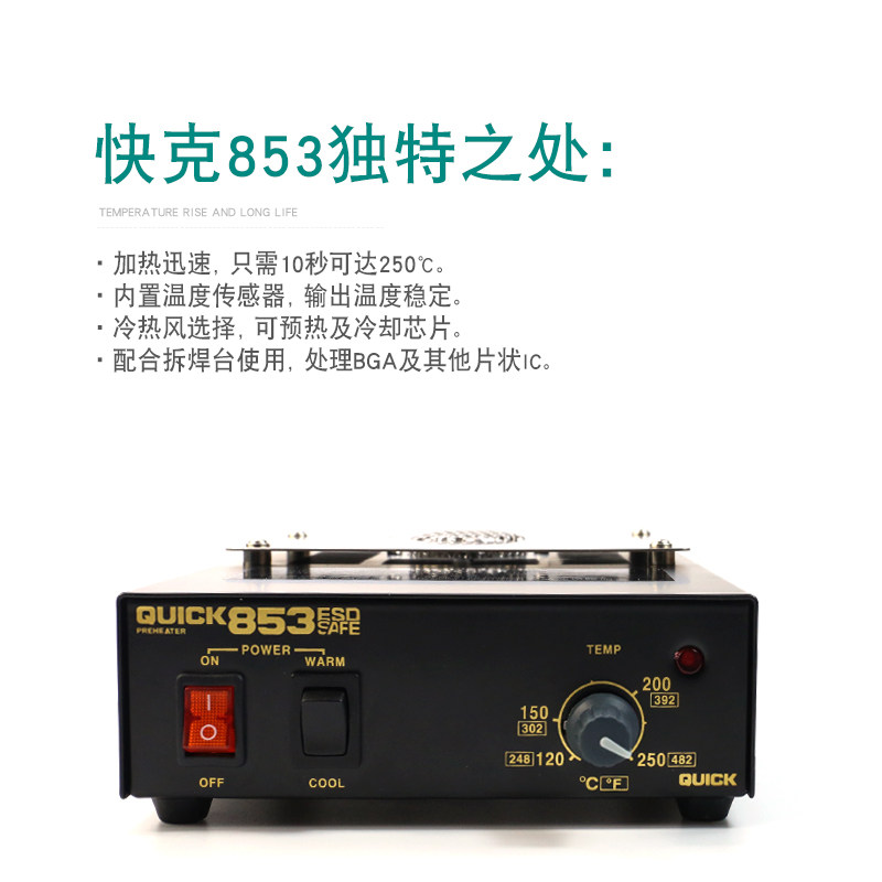 Original fit quick gram 853 hot air pre-heating table electric disassembly welding heating table mobile phone repair platform 460W tool sensor