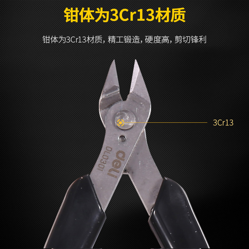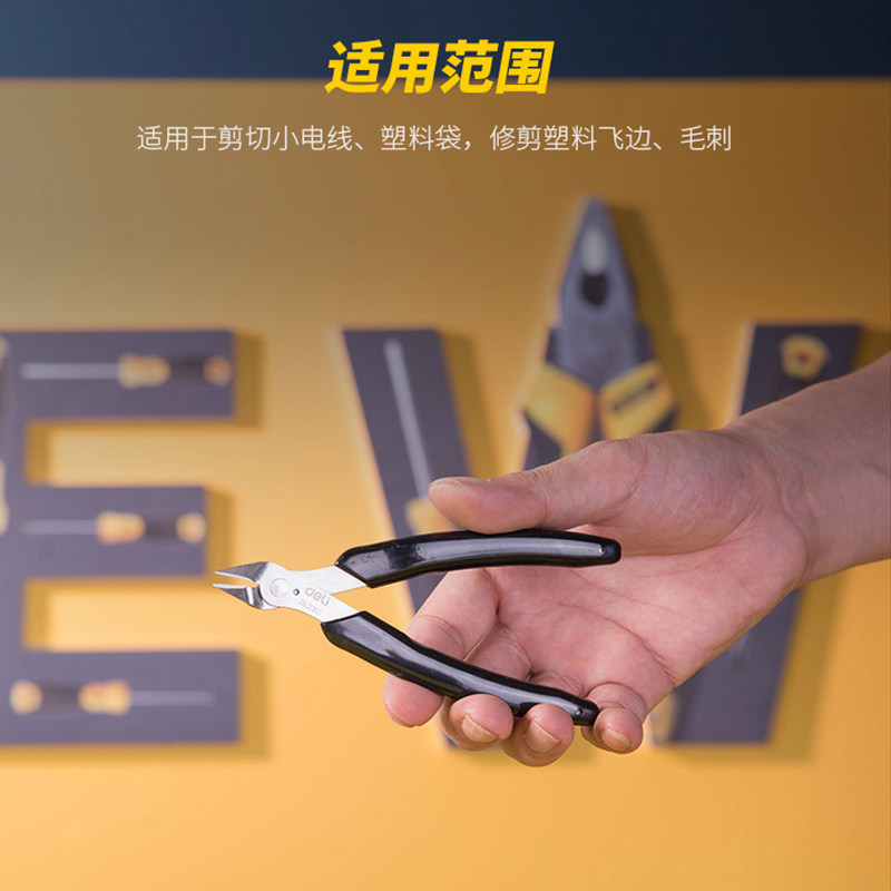 Deli 4 5 inch electronic shear pliers Trimming shearing burring shearing line pliers Pointed mouth shearing water mouth pliers Mini shearing labor-saving