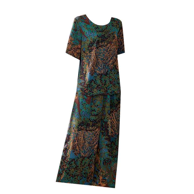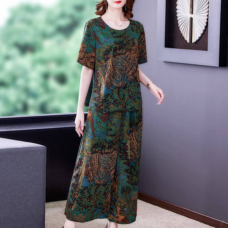 Heavy Pound Genuine Silk Two-piece Style Suit Broadlegged Pants 2022 New Summer Fragrant Cloud Yarn High-end Big Size Women's Clothing Mom Minus Age