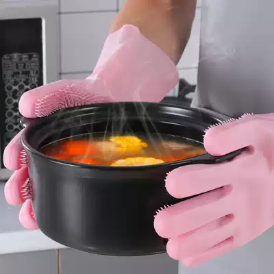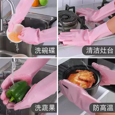 Silicone dishwashing gloves female household waterproof cleaning artifact Silicone durable kitchen brush bowl washing clothes