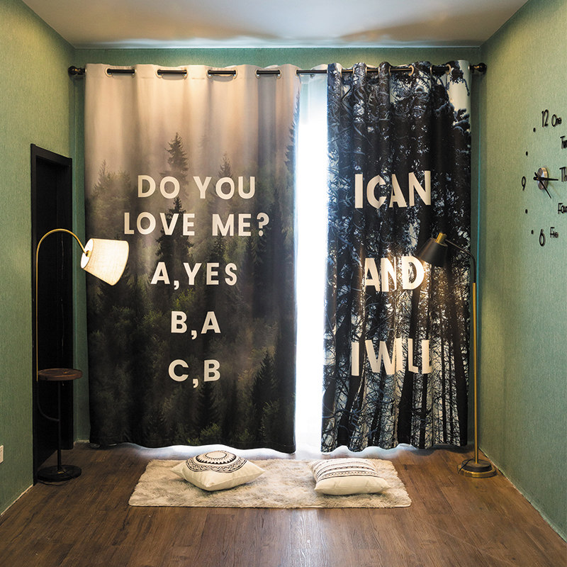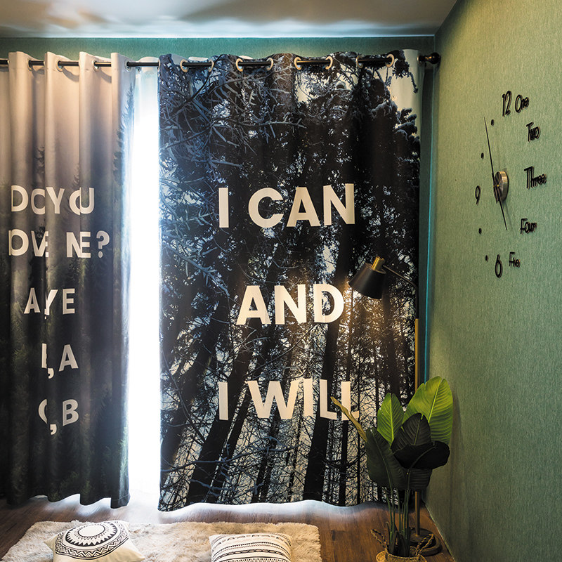 Custom long curtain coarse linen simple Nordic forest perforated sunshade living room bedroom full shading seamless curtain