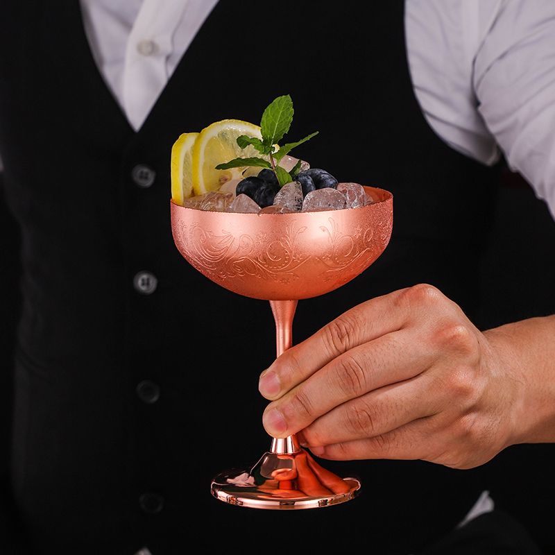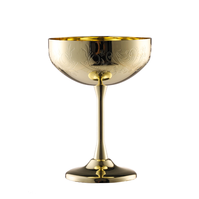 Japan-style Stainless Steel Cocktails METAL ETCHED WIDE MOUTH CHAMPAGNE CUP HIGH FOOT GILDED BRONZE CUP MATTENI CUP