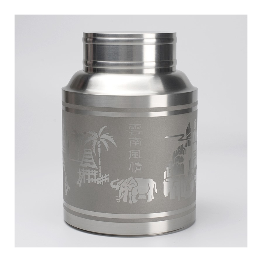 Sandblasted pure tin extra-large tea cans Works of arts and crafts master Li Zisen Yunnan pure tin