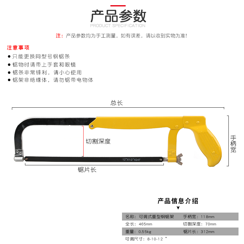 Steel saw frame handsaw saws with small hand worksaw anti-slip with plastic handle adjustable industrial heavy steel saw tool