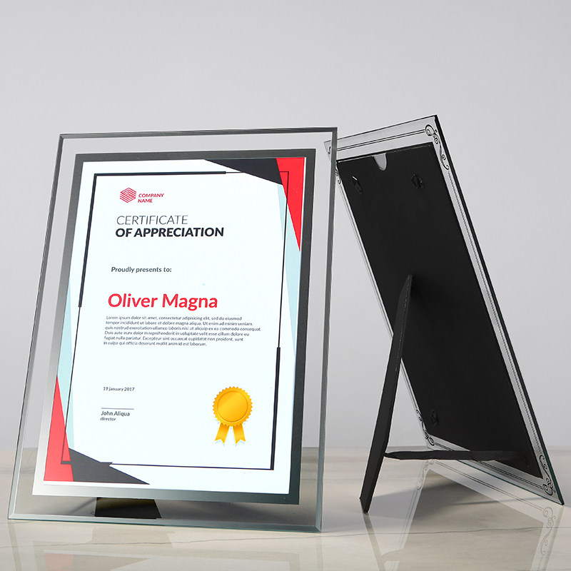 Certificate of Honor a4 Certificate Frame Crystal Glass Photo Frame Wall Patent Authorization Certificate Protective Cover Frame Table