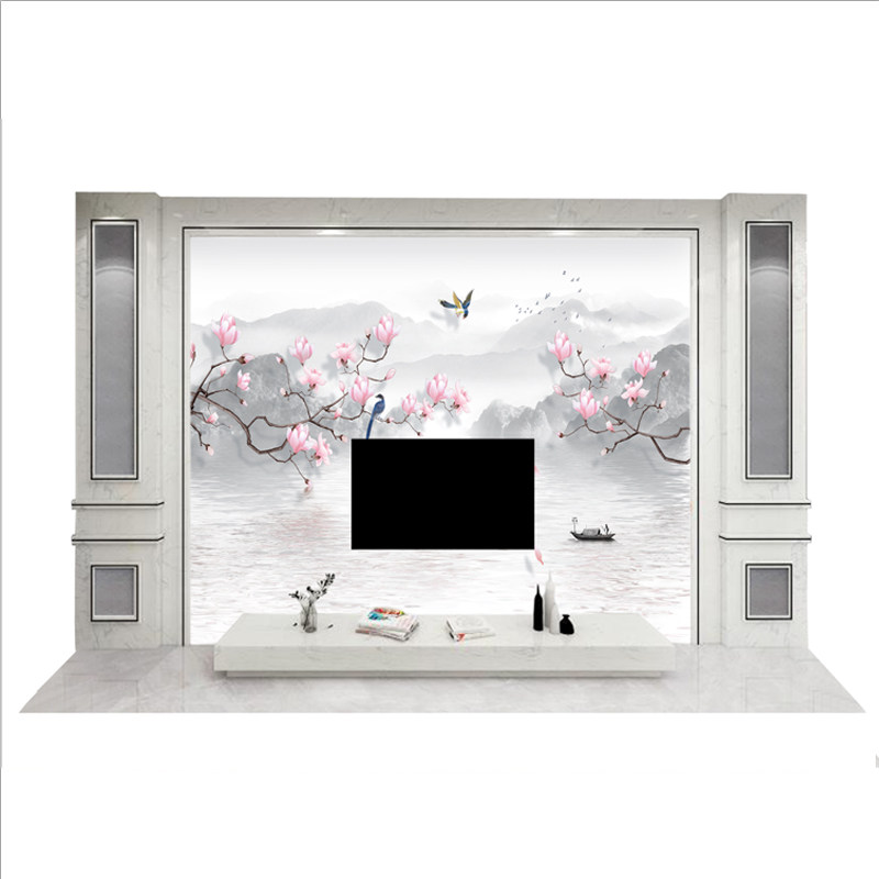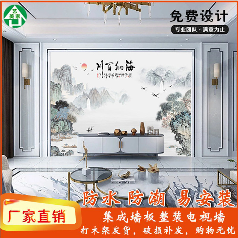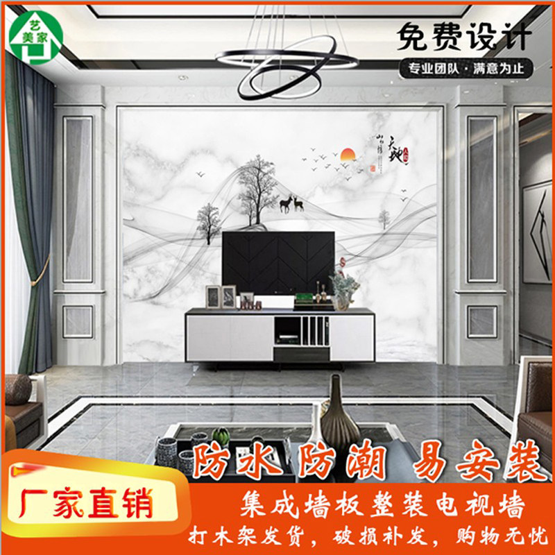 Integrated wall panel Roman column styling rims TV background wall Waterproof bamboo fiber light lavish minimalist living-room decoration