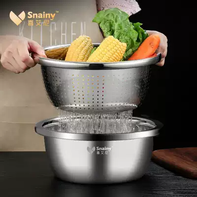 304 stainless steel basin drain basin set thickened household kitchen washing rice beating egg and basin washing basin drain blue