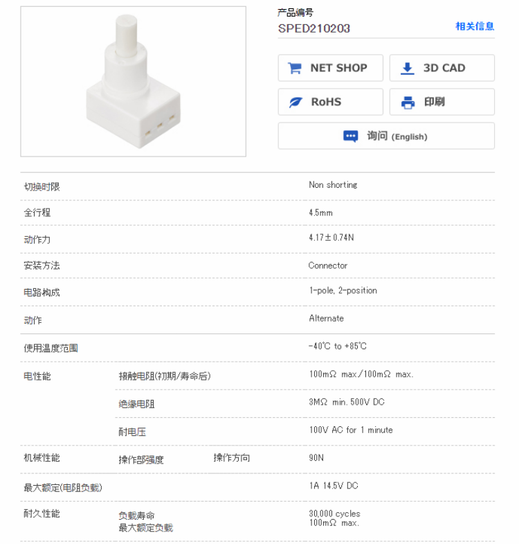 Imported Japan ALPS double sound key roof reading lamp learning desk lamp key switch SPED210203