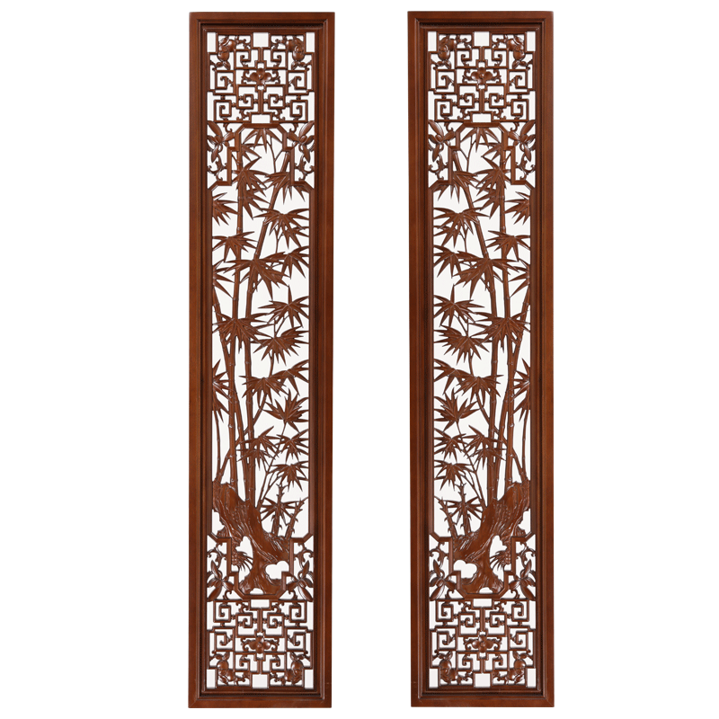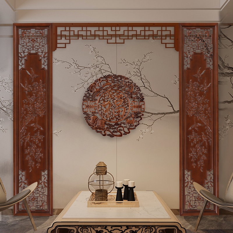 Dongyang wood carving new Chinese TV background wall decoration rosewood antique lattice hollow-out partition antique decoration living room