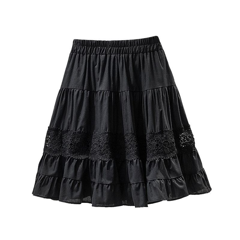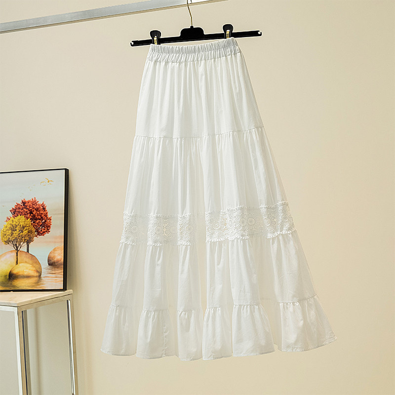 Cotton linen lace skirt women's summer white short skirt high waist pleated a-line skirt mid-length version large swing lotus leaf umbrella skirt