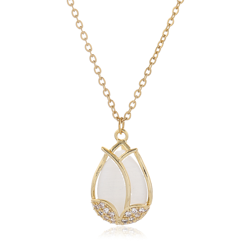 Tulip Flower Necklace Women's Opal Diamond Pendant Women's 18k Gold Personality Clavicle Chain Non-fading Design Sense