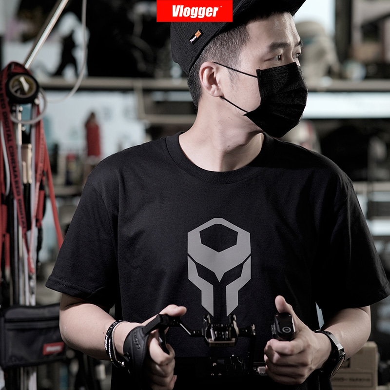 Iron head joint photographer pure cotton short sleeve retro threaded mouth male and female Vlogger State ChaoveresizeT shirt