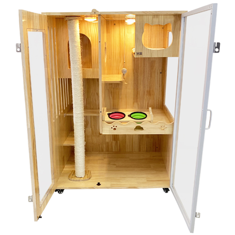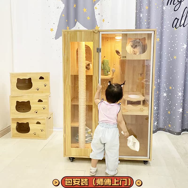 Solid wooden cat villa cat crawling through Tianzhu Cage Cage Super Free Space Household Cat House small apartment three floors