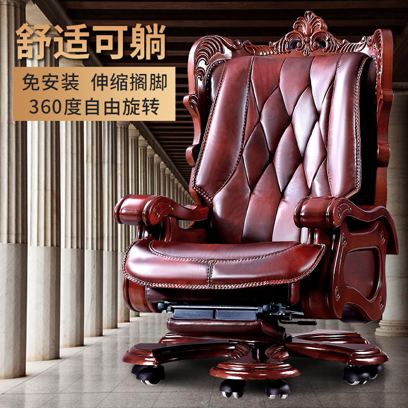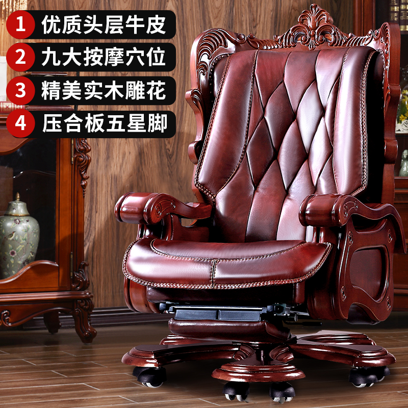 Domineering boss chair leather computer chair home study lift executive chair solid wood office chair massage president chair