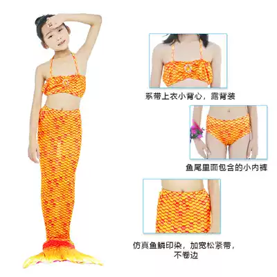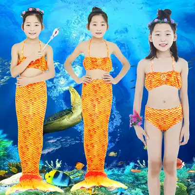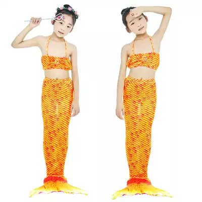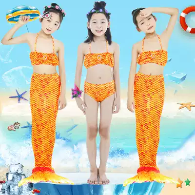 Mermaid Clothing Swimsuit Set Three Piece Girl Boy Mermaid Tail Princess Dress Yellow Print
