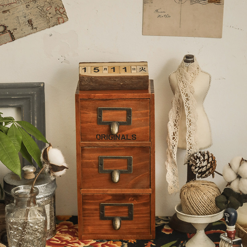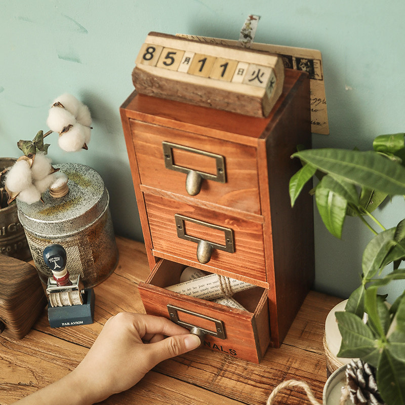 Retro solid wood drawer storage box cosmetic table desktop jewelry tape jewelry finishing cabinet rectangular multi-layer