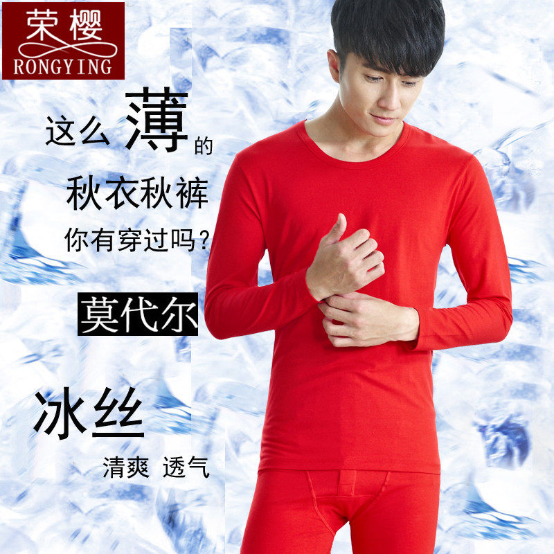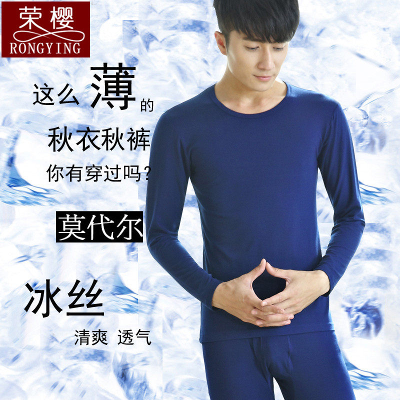 Men's ultra-thin ice silk modal autumn clothes sanitary pants underwear set cotton silky sanitary clothes sanitary pants summer wear