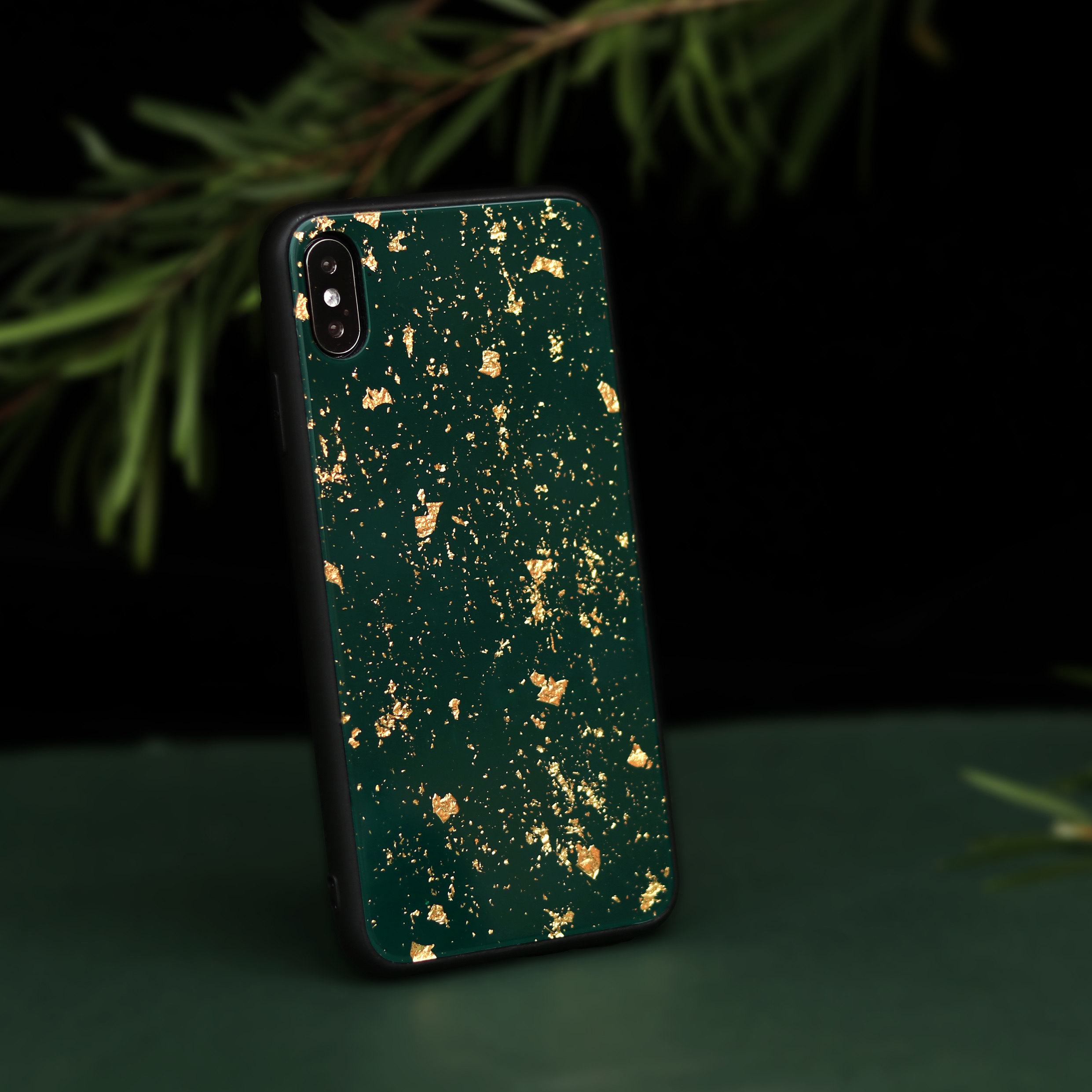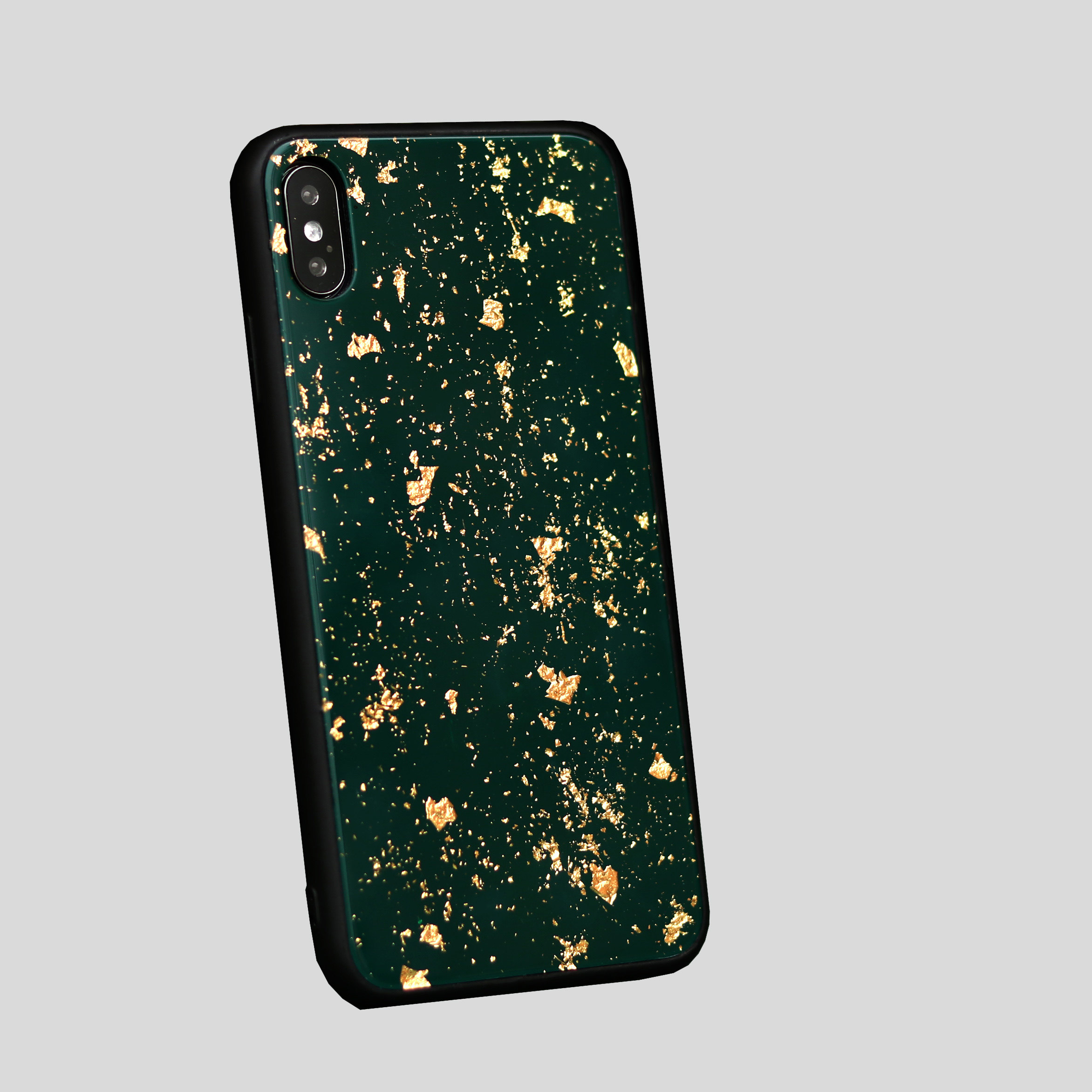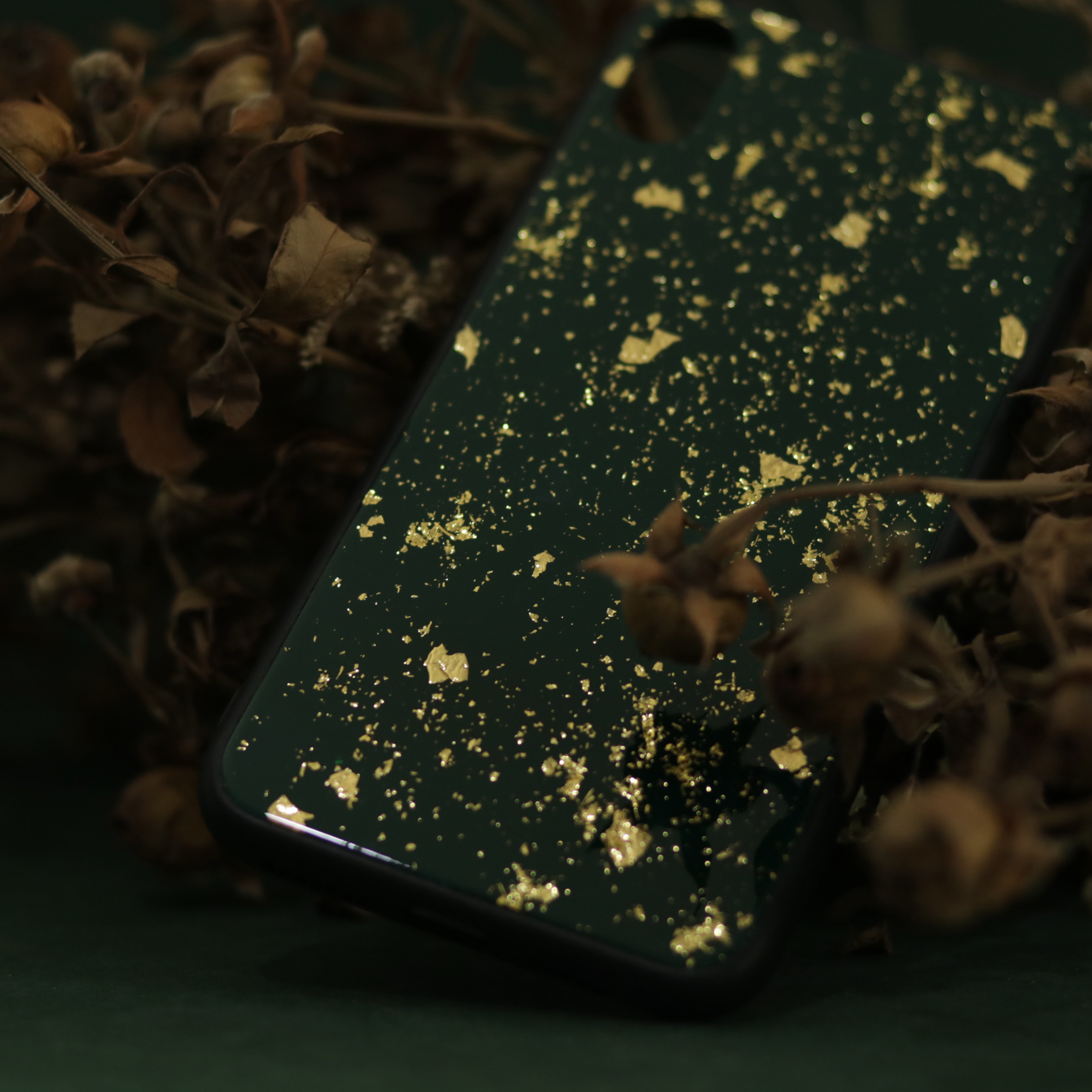 Mountain and SANHE lacquerware green gold foil iPhone13promax mobile phone case solid wood carbon fiber lacquer gift