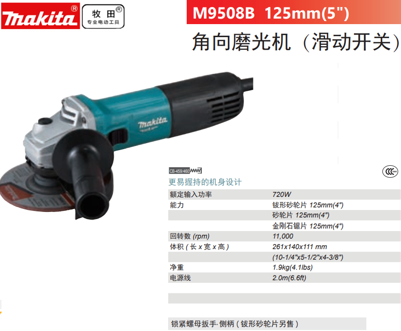 Makita angle grinder 125m rear switch upgrade protective cover anti-accident wall wood porcelain thin handle strong angle grinder