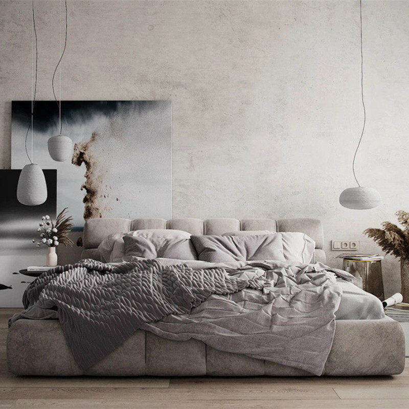Bed simple modern Nordic ins wind industrial double bed master bedroom cloth bed light luxury soft bed tatami cloth bed