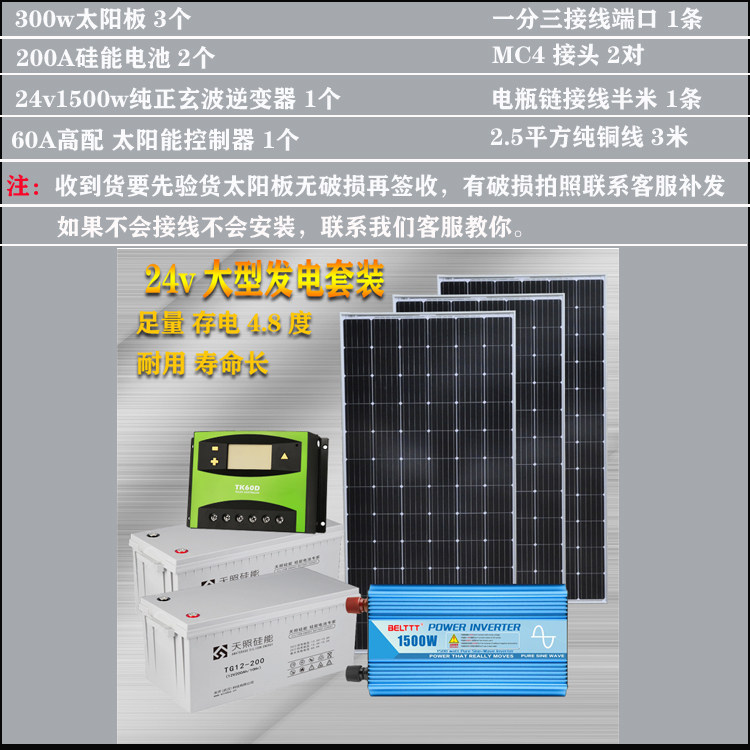 24v900w solar power generation set 220v home appliances for monitoring outdoor breeding controller battery system