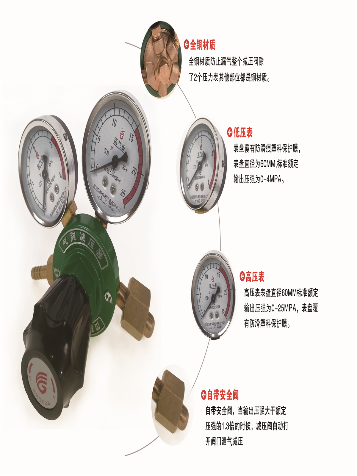 National winning card full copper oxygen pressure reducer gas cylinder pressure meter oxygen meter YQY-1A type pressure reducing valve