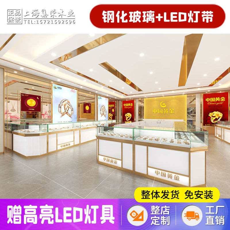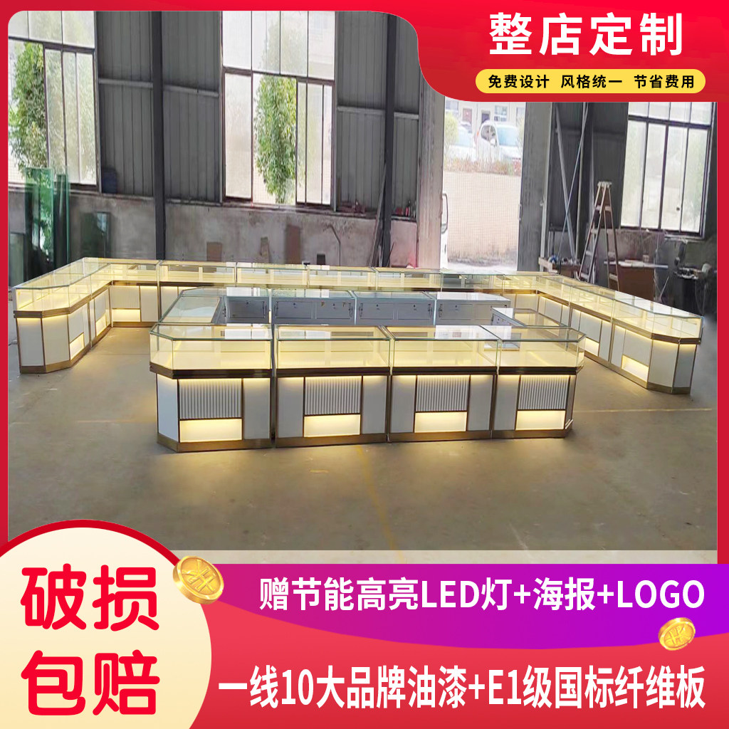 Jewelry display counter gold and silver emerald glass cabinet jewelry jade jewelry watch showcase display cabinet direct sales