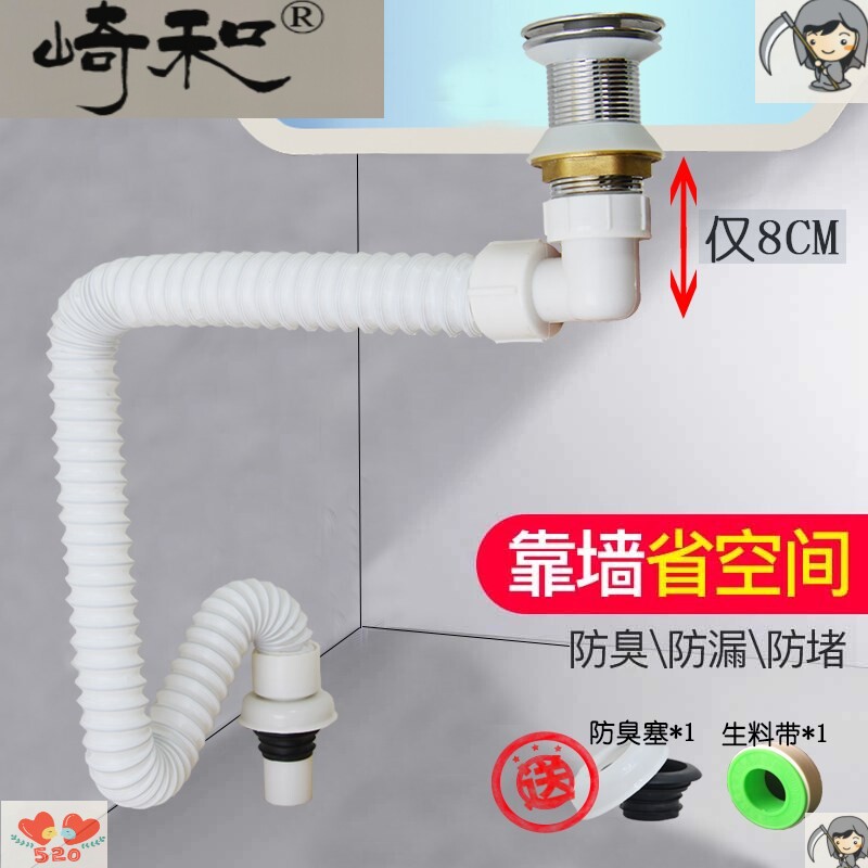 Hand-washing short section underwater water drainage flip pool washbasin tube deodorant drainer basin surface wall-mounted rear stainless steel