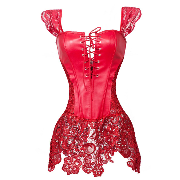 Fine Lace Hollowed-out Emulation Leather Shapen Clothes and American Shapen Underwear Bundle Body Dress with one-piece dress Corset
