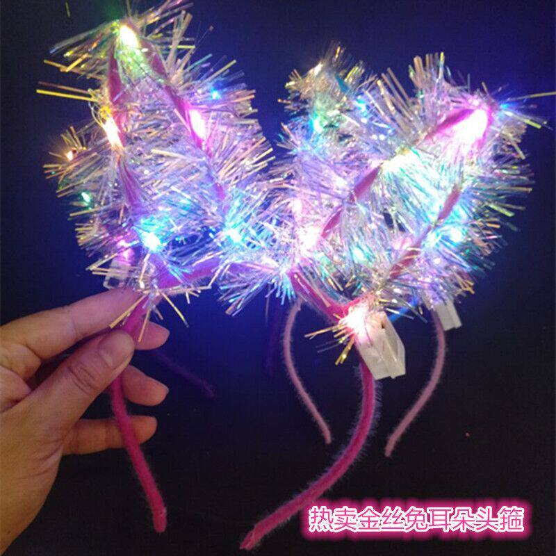 New gold rabbit ear glowing headdress with lights concert props dressed up cat ear hoop night market toys