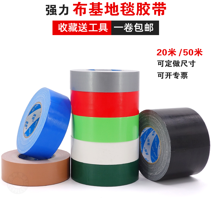Color high sticky cloth base adhesive tape 20 m 50 m powerful wedding carpet adhesive tape red silver black cloth rubberized fabric