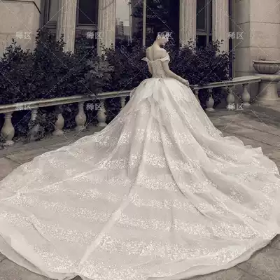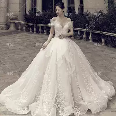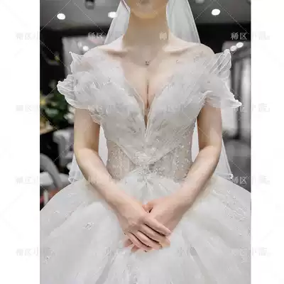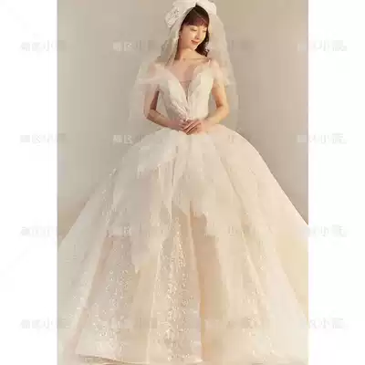 Starry Sky main wedding dress bride 2021 New temperament French light word shoulder heavy work big tail shake sound Net Red