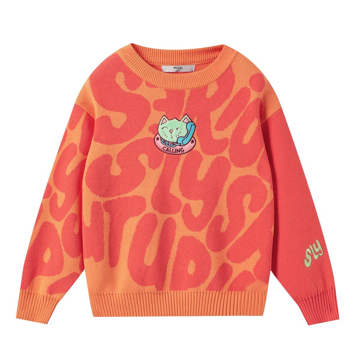 MQD Children's Clothing Girls Full Edition Cartoon Sweater 22 Years Spring and Autumn New Year Children Loose Shoulder Drop Knit Shirt Korean Version Tide