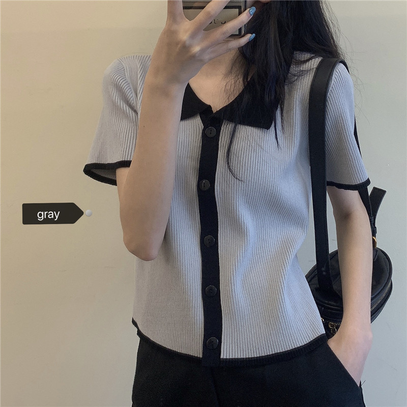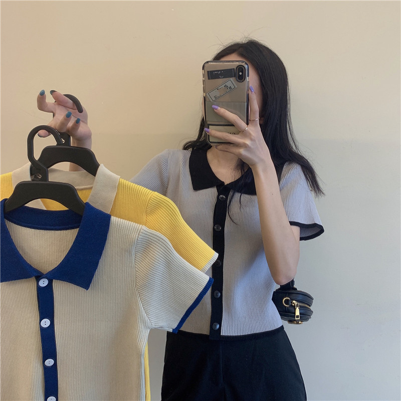 Summer 2023 new short colour POLO decreased age French knife shirt straight shoulder short - sleeve T - shirt Summer