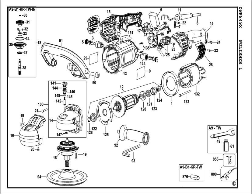 DEWALTDWP849X XD WEI POLISHING MACHINE Cosmetic Beating Wax Machine Screw-throwing Machine Switch Carbon Brush Throttle accessories
