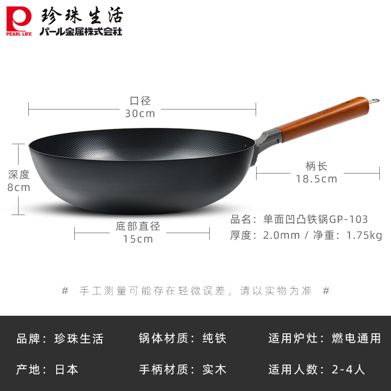 Pearl Life GP-103 Japan Original Imported Iron Pan Without Coating Easy To Stick Pan Domestic Frying Pan Flat Bottom Pan