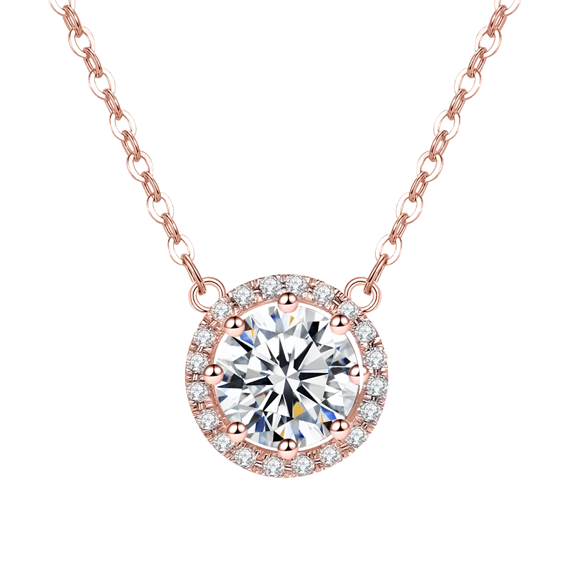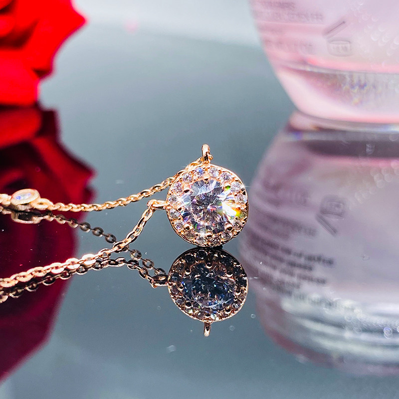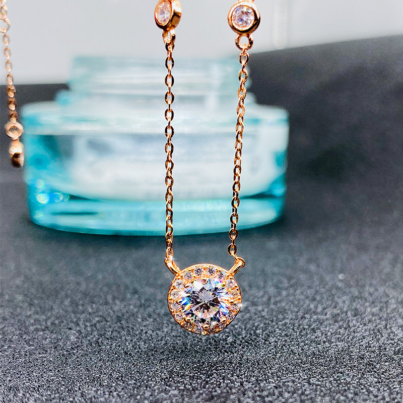 18K Rose Gold Single Drill Necklace Mossan Diamond Bubble Pendant Group Inlaid Round Lock Bone Chain 2020 New Woman