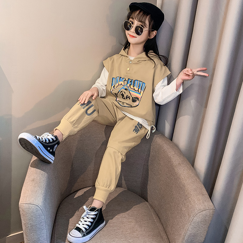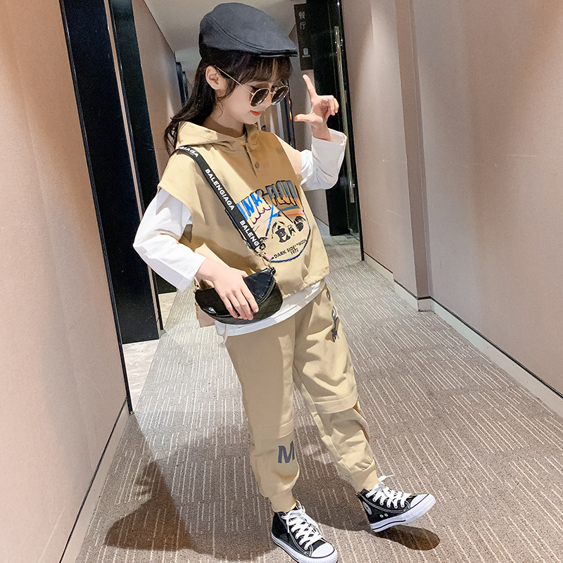 Girls 'autumn suit 2020 new children's girls' foreign style fashionable sports three-piece suit big virgin net red autumn section