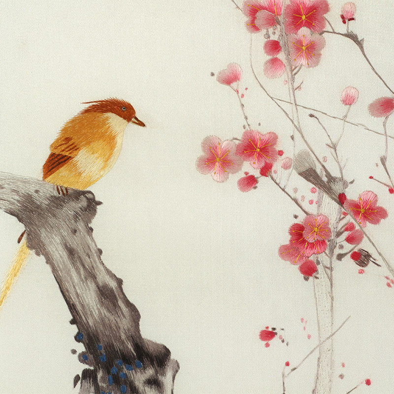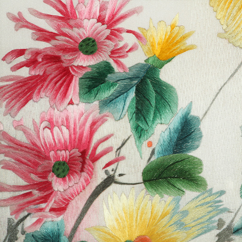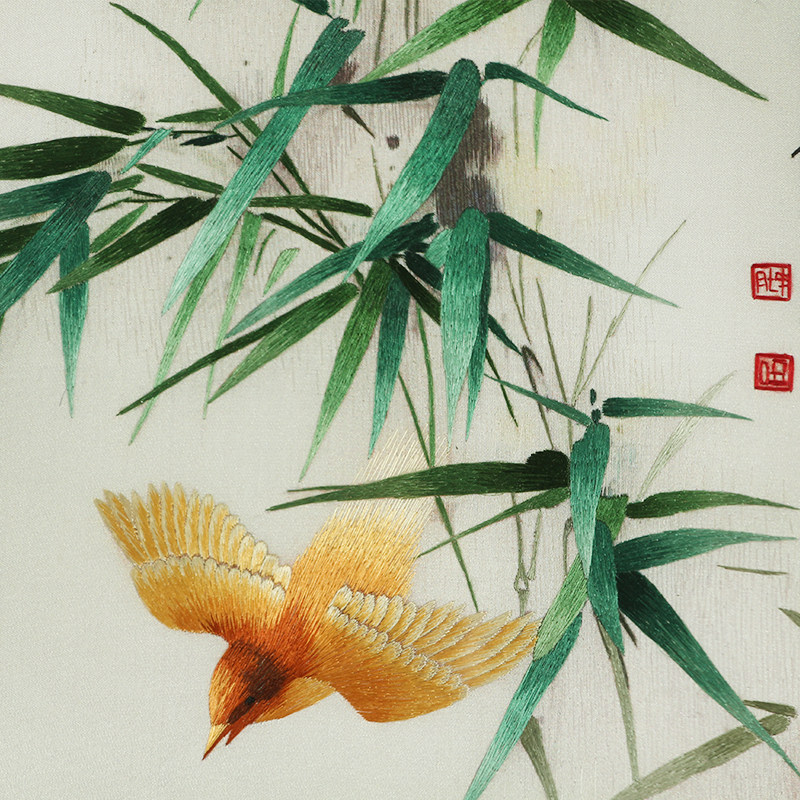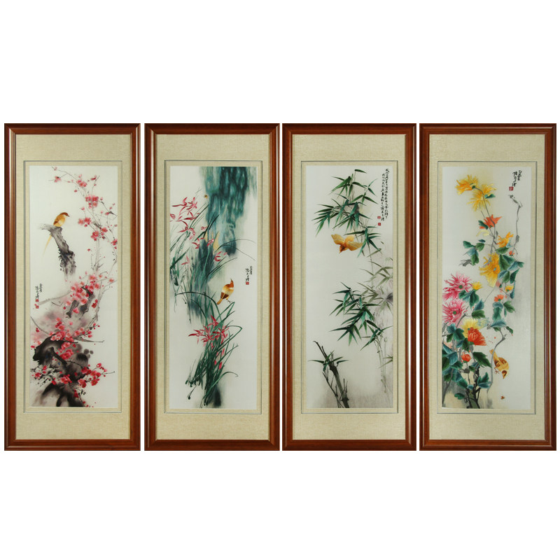 Handmade Embroidered Finished Living Room Decoration Hanging Painting New Chinese Genuine Silk Embroidered Master Flowers Birds Four Screens