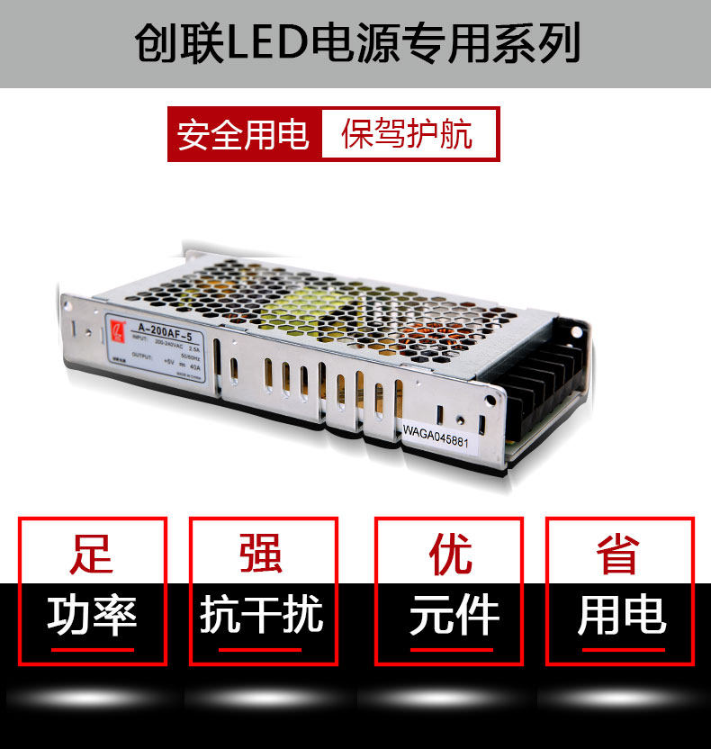 Innovative power supply LED display screen power 5V40A200W single bicolor full-color full-rehearsal switch power LED look board lamp transformer