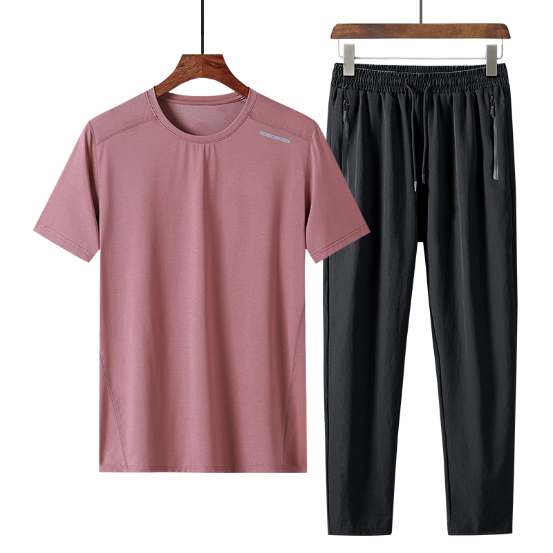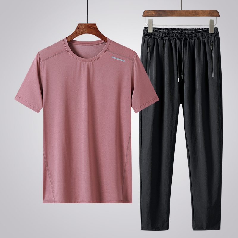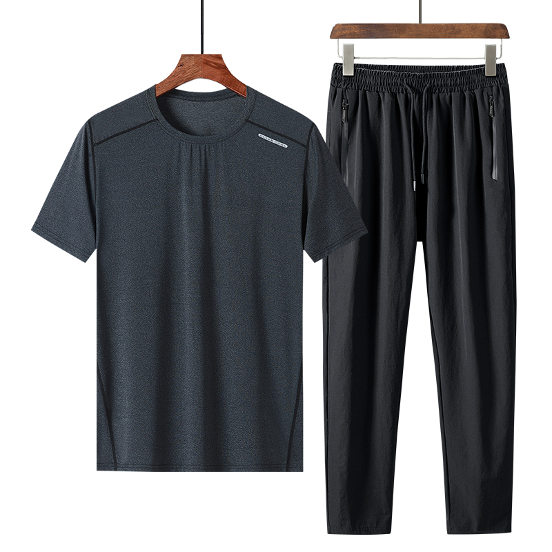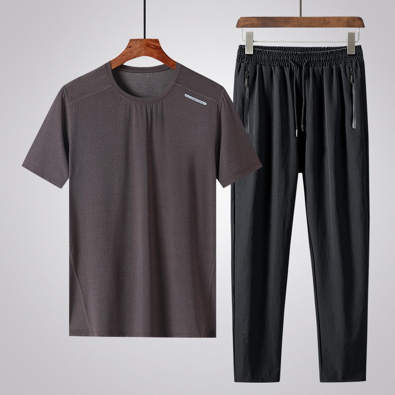 Middle Aged Clothing Summer Men Short Sleeve T-shirt Men's Round Collar Speed Dry Dad Ice Silk Casual Suit Men's Two Sets
