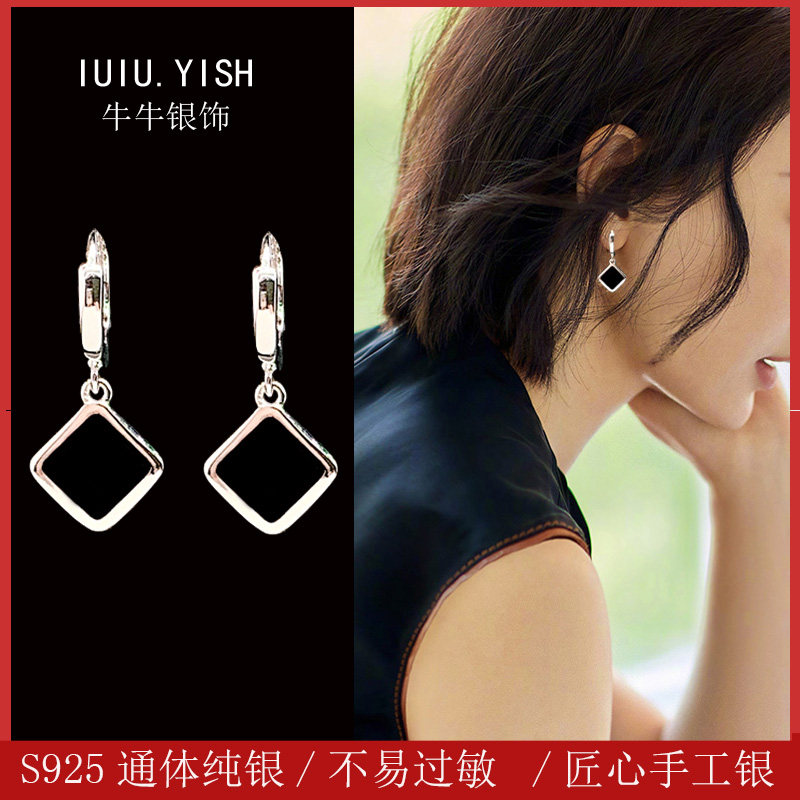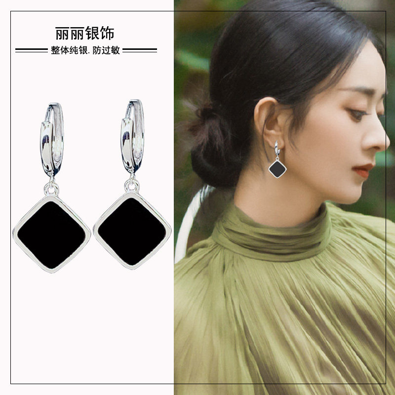Premium sense earrings 2022 new Chao diamond-shaped Korean temperament simple net red earrings women's S925 sterling silver earrings