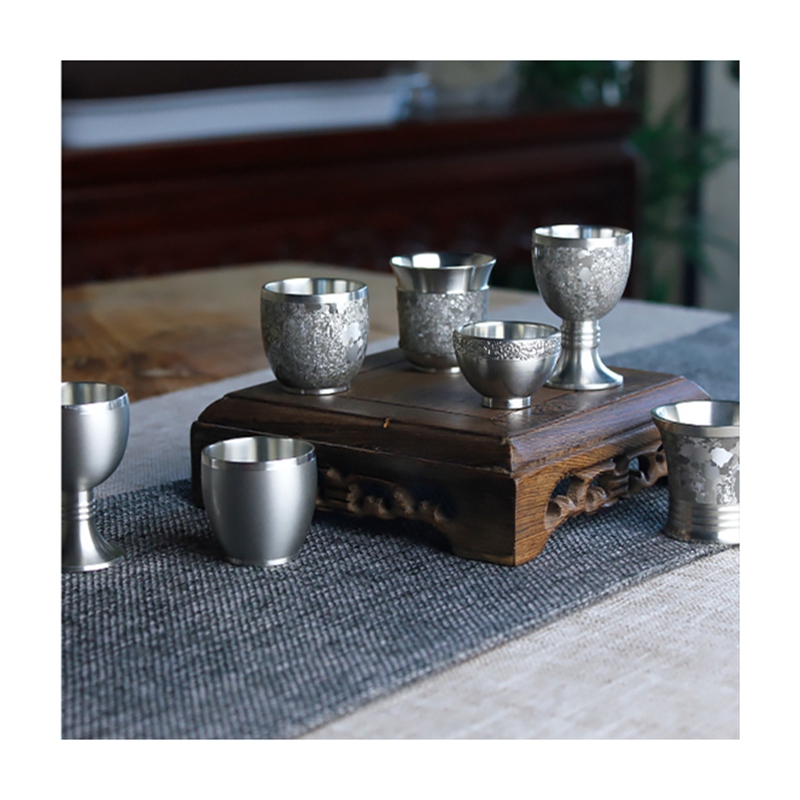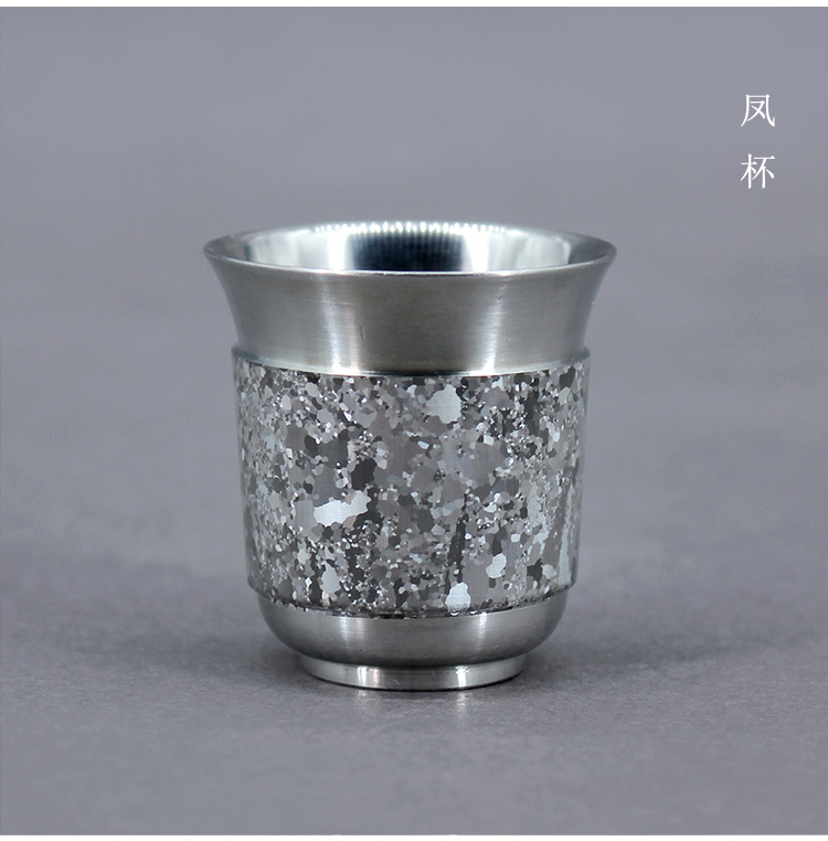 Pure tin - white glass with one cup (single - fitted) craft art master Li Zussen works Yunnan pure tin