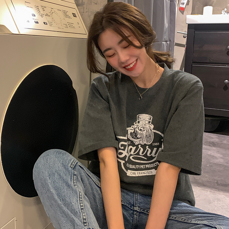 Spring 2021 new Korean edition college style loose printing super fire short-sleeved net red T-shirt top women's ins tide