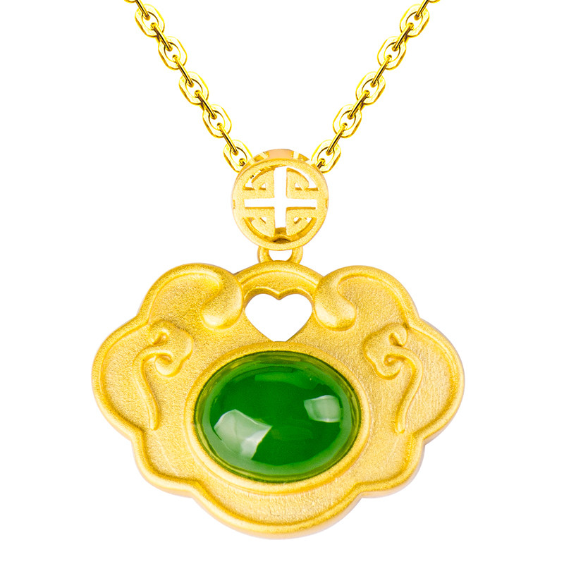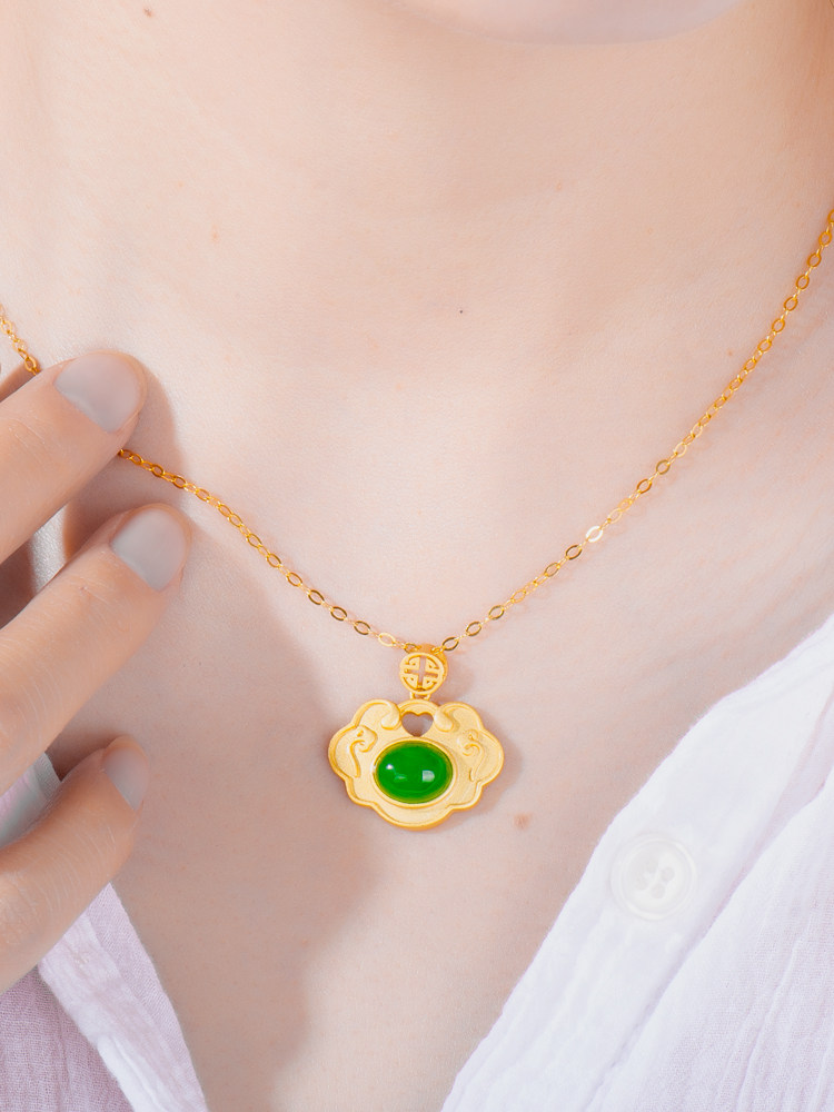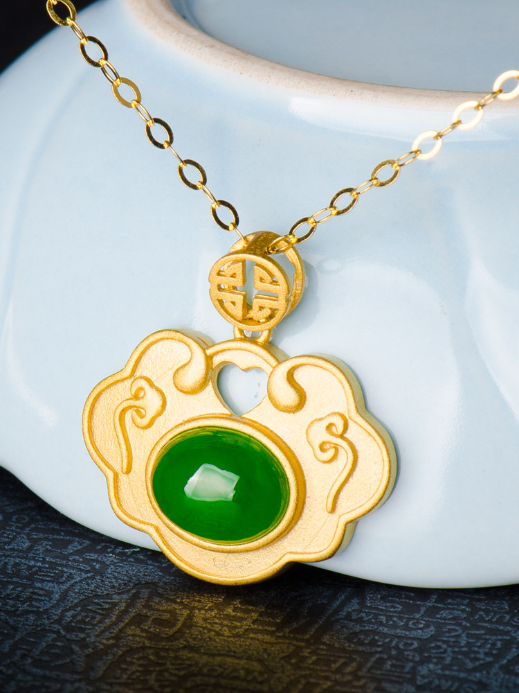 Hetian jade pendant female S925 sterling silver fortune-seeking peace lock ancient gold simple all-match natural jasper necklace