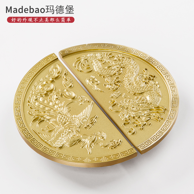 Furniture cabinet door pure bronze imitation ancient handle brass Longfeng Fengxin Chinese Lucky Cloud round integral cabinet wine cabinet Guan Guan Cabinet Handle