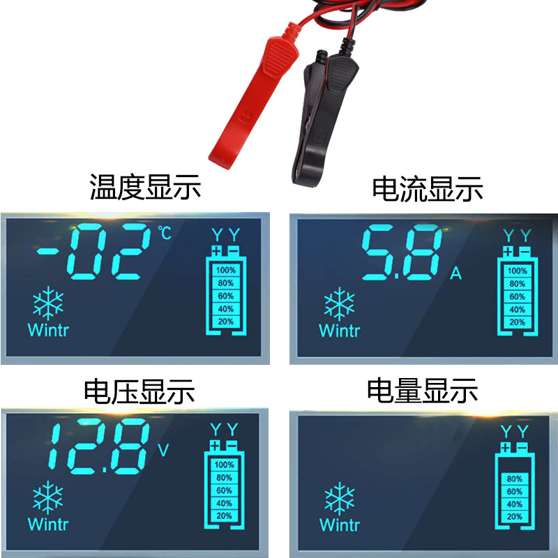 Car locomotive battery charger 12V on-board storage battery intelligent digital display automatic charging motor tool