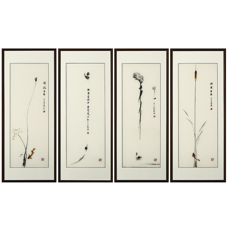 Hand embroidery, finished product, living room decoration, hanging picture, new Chinese style, silk, Bian embroidery master, Zen
